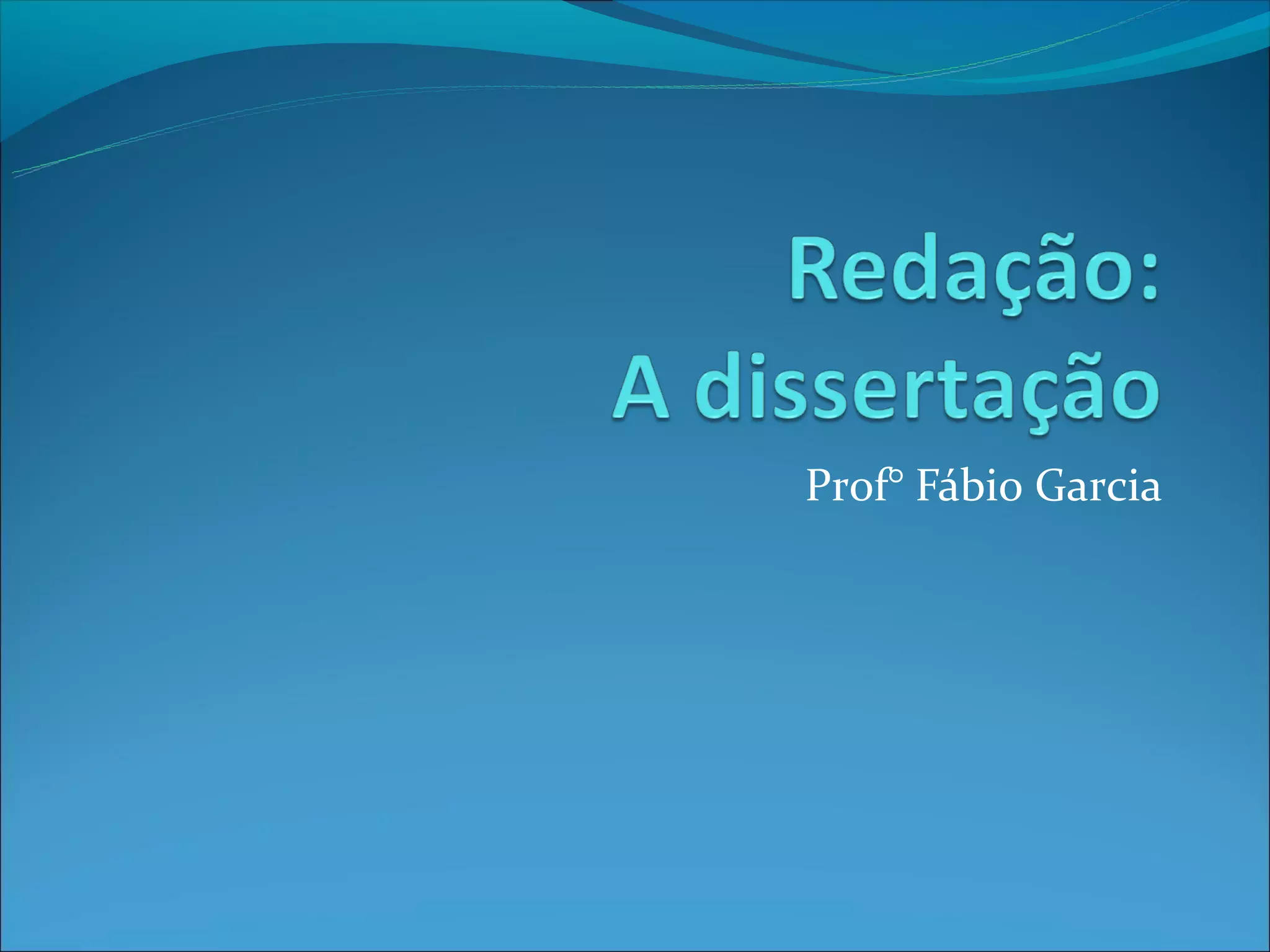 O documento discute o conceito de dissertação, definindo-a como um texto que defende uma ideia através de argumentos e fatos. Apresenta a estrutura básica de uma dissertação, incluindo introdução, desenvolvimento e conclusão. Fornece dicas sobre como redigir uma boa dissertação, como uso da terceira pessoa e linguagem formal.