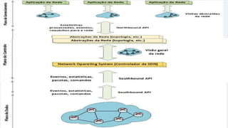 Este documento resume o paradigma de rede definida por software (SDN). SDN separa o plano de controle da rede do plano de encaminhamento, permitindo que o plano de controle seja diretamente programável e gerenciado centralmente. Isso supera limitações das arquiteturas de rede tradicionais e habilita novas aplicações de rede.