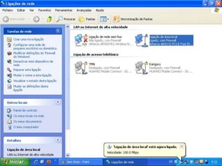 Este documento descreve os passos para conectar dois computadores através de um cabo UTP e compartilhar dados entre eles, incluindo: 1) Criar as ligações físicas entre os computadores com um cabo UTP e conectores RJ45; 2) Configurar o sistema operacional Windows em cada computador para permitir compartilhamento; 3) Transferir arquivos entre os computadores após a conexão estar estabelecida.