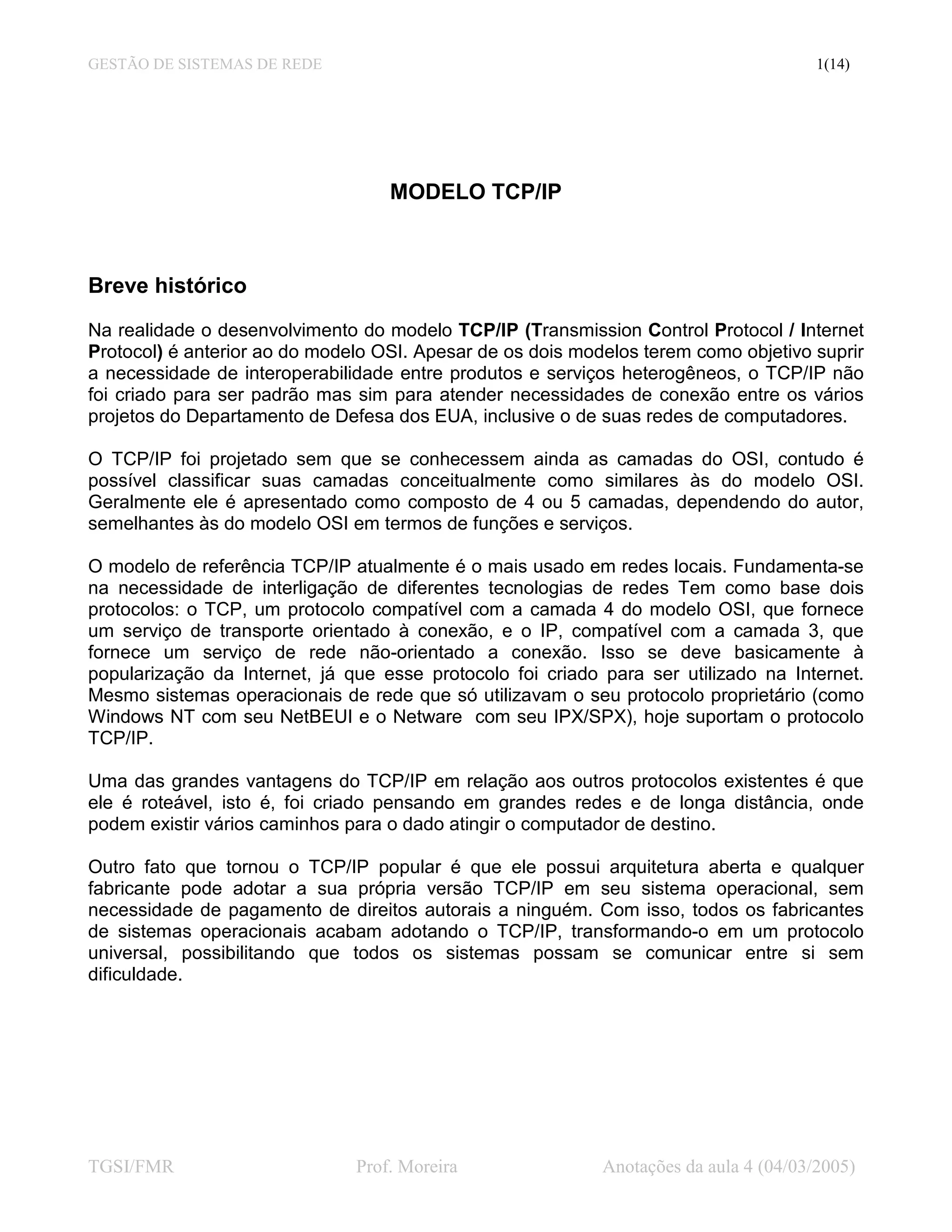 O documento descreve os modelos TCP/IP e Ethernet, que são amplamente utilizados em redes de computadores. O TCP/IP foi desenvolvido inicialmente para o Departamento de Defesa dos EUA e é composto por 4 camadas, enquanto o Ethernet define os protocolos das camadas física e de enlace de dados, permitindo a comunicação entre dispositivos conectados. O documento também fornece detalhes sobre os componentes e características dessas camadas de rede.