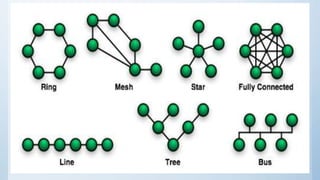 Este documento descreve as características básicas de redes de computadores, incluindo sua definição, objetivos, tipos de meios de comunicação, modelos segundo Tanenbaum e tipos de topologias.