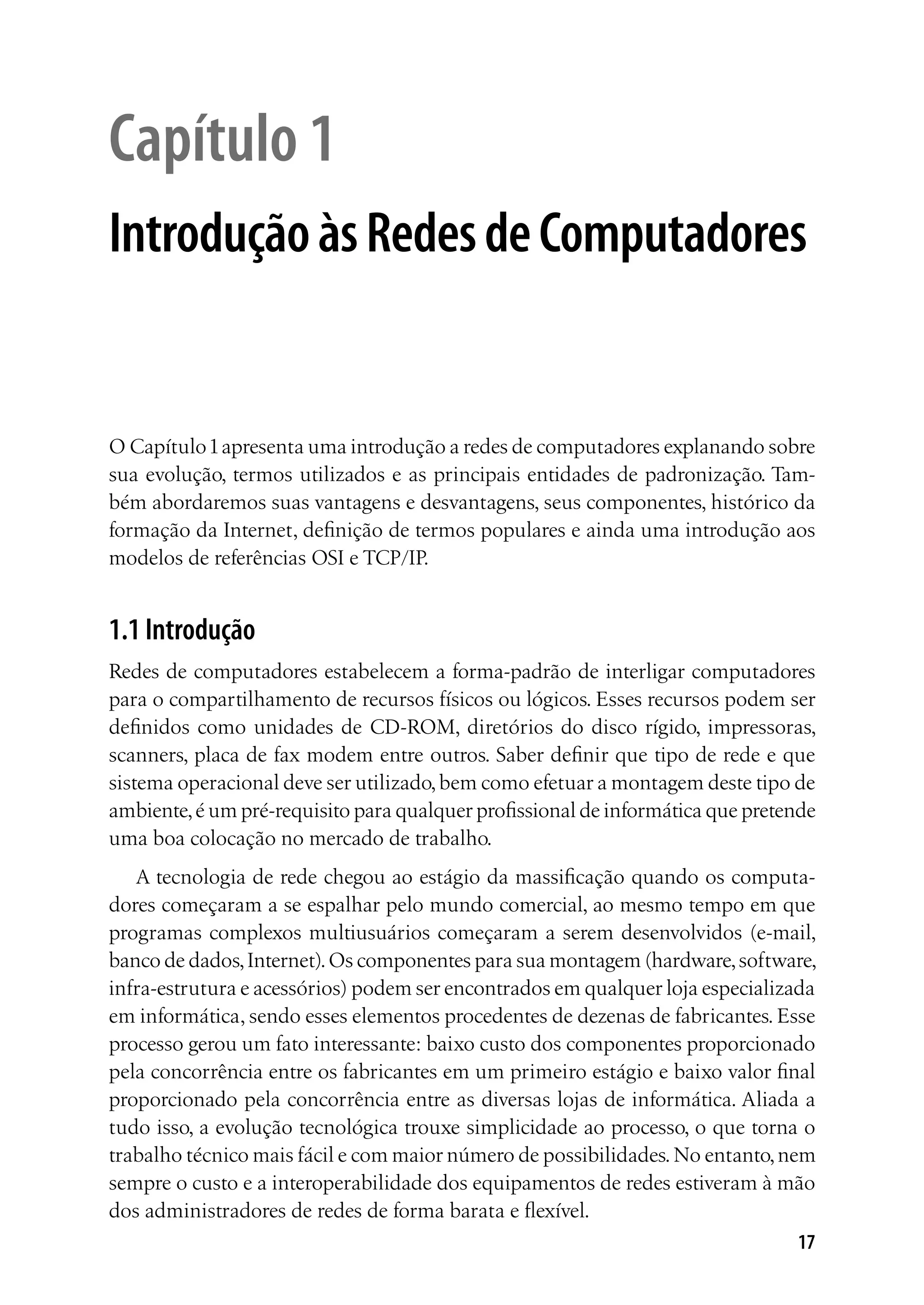 O capítulo introduz conceitos básicos sobre redes de computadores, incluindo sua evolução, termos comuns, padrões de rede OSI e TCP/IP, e histórico da Internet. Também define a diferença entre Internet e internet, descreve serviços como o WWW, e apresenta conceitos como Intranet e Internet 2.