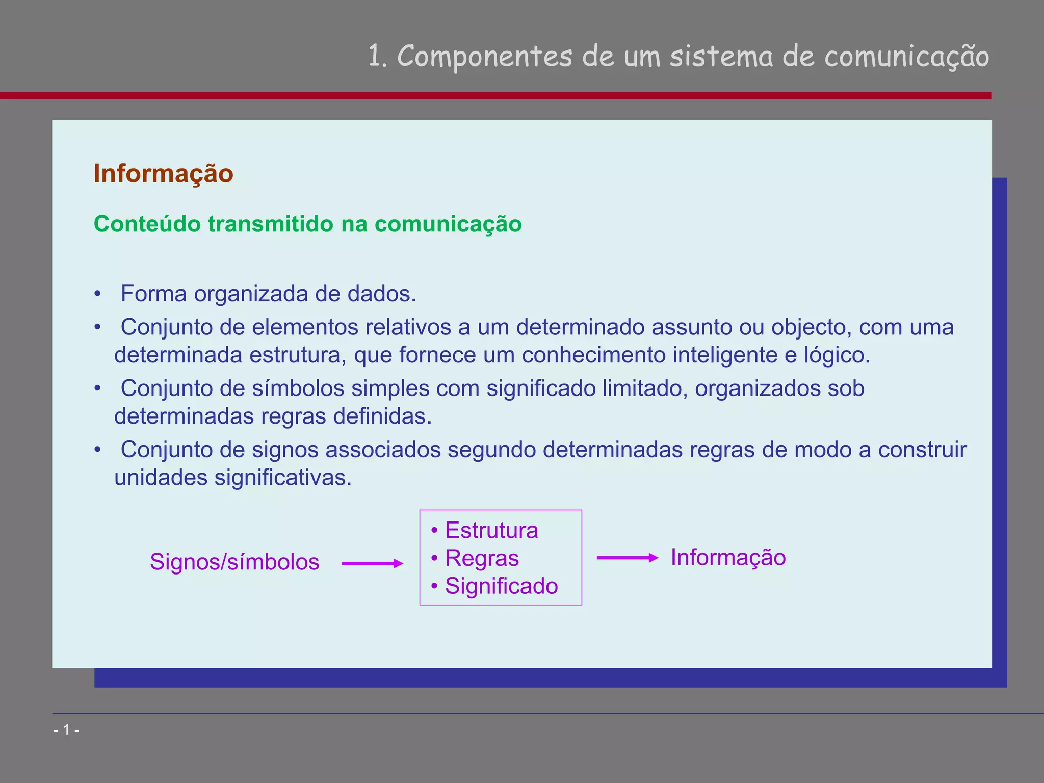O documento discute os conceitos fundamentais de informação, comunicação e sistemas de comunicação. Define informação como um conjunto organizado de dados ou símbolos com significado. Explora os componentes de um sistema de comunicação, incluindo emissores, receptores, canais, mensagens e tipos de comunicação. Também descreve vários meios e tecnologias de comunicação como cabos, ondas hertzianas, Wi-Fi e conversão de sinais analógicos para digitais.