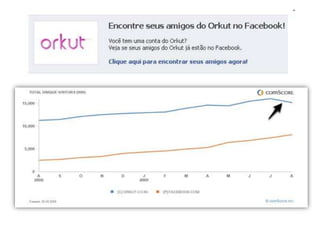 O documento discute as redes e mídias sociais, destacando: (1) O poder das mídias sociais no Brasil com quase 80 milhões de usuários da internet e 25 milhões em redes sociais; (2) O Orkut é a maior rede social do Brasil com mais de 35 milhões de usuários por mês; (3) O YouTube tem 16 milhões de usuários brasileiros e é a plataforma de vídeo mais popular.