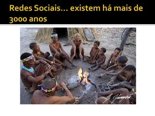 Redes sociais existem há mais de 3.000 anos, mas evoluíram com as tecnologias de comunicação. Atualmente, 80% dos brasileiros participam de redes sociais, principalmente Orkut. Uma proposta é desenvolver uma rede acadêmica com recursos como carona solidária, fórum, biblioteca e compartilhamento de arquivos.