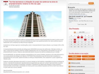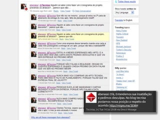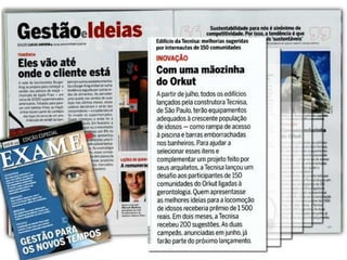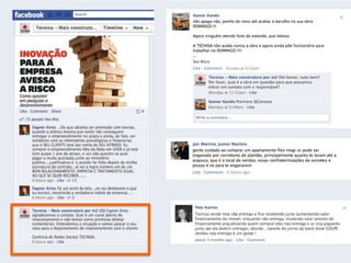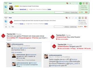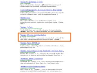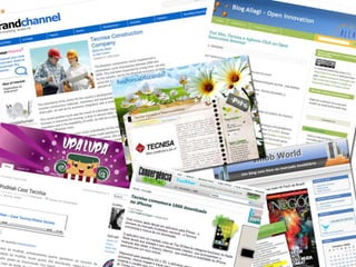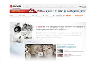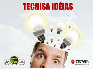 O documento apresenta as informações sobre a Tecnisa, construtora brasileira que atua há 34 anos no mercado imobiliário. A empresa possui 2.000 funcionários, atua em mais de 26 cidades com mais de 200 projetos lançados totalizando mais de 30.000 unidades e 5 milhões de metros quadrados. A Tecnisa segmenta seus produtos em Premium e Flex e tem como principais práticas o marketing digital, sendo pioneira em vender apartamentos online e por redes sociais.