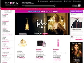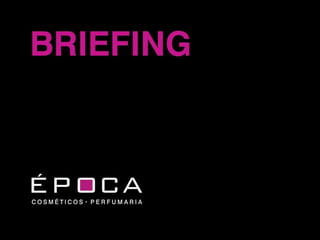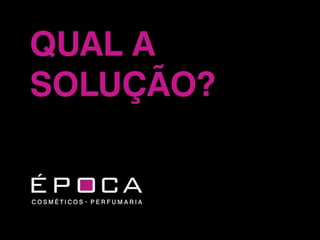 O documento descreve o problema da loja virtual antiga da Época Cosméticos Perfumaria, que não atraía clientes de forma eficaz. Apresenta a nova solução com uma arquitetura de informação mais feminina e comercial, integrando melhor as mídias sociais e permitindo maior interação dos clientes. O objetivo é aumentar significativamente as vendas online.