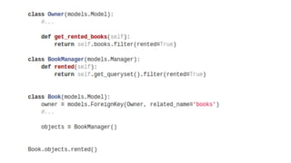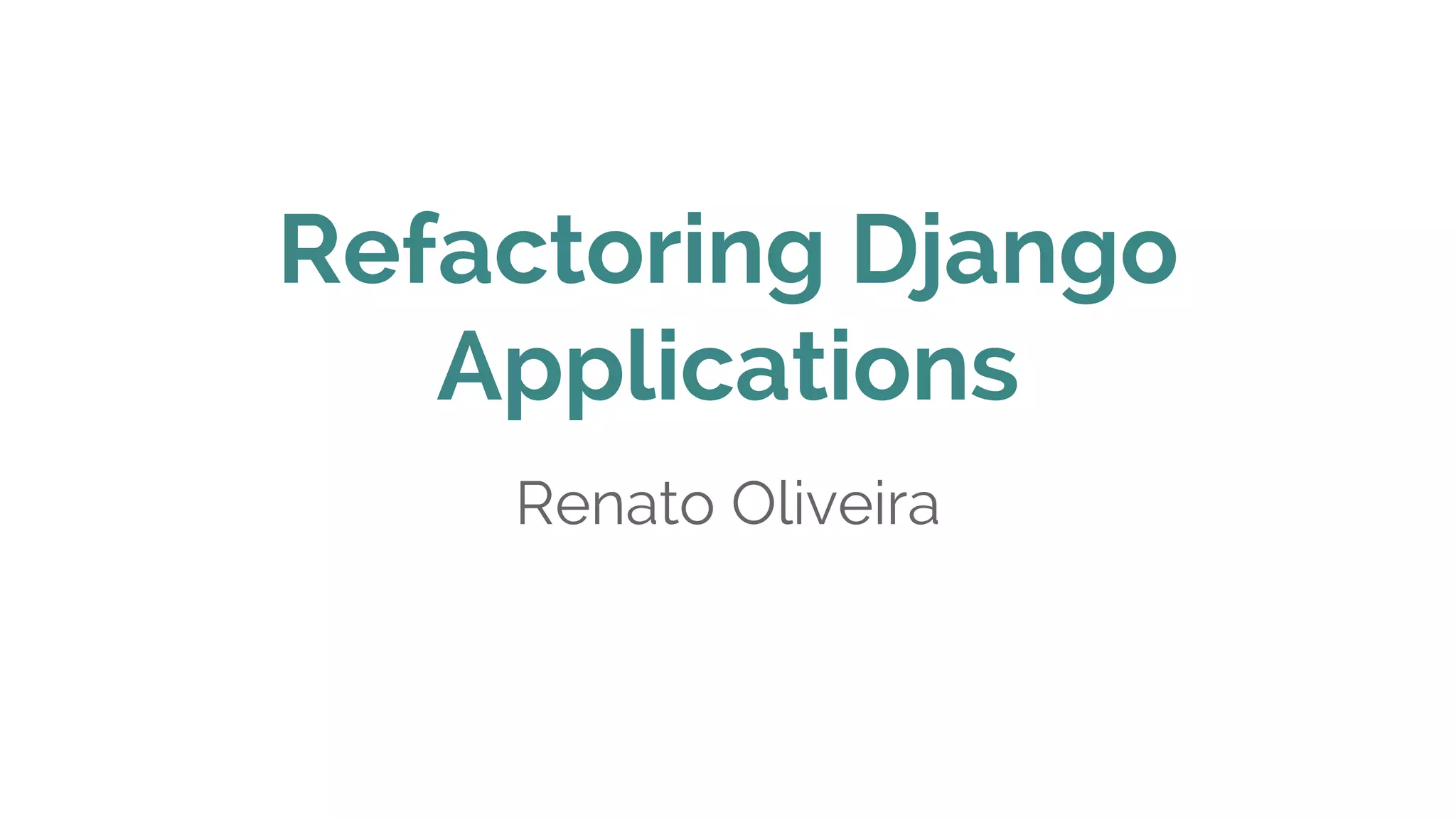 Renato Oliveira apresenta técnicas para refatorar aplicações Django, incluindo usar testes para refatorar sem problemas, evitar repetição de código com DRY e melhorar performance com context processors e managers para limitar queries. Ele também discute fat views e models e como melhorar a arquitetura das aplicações.