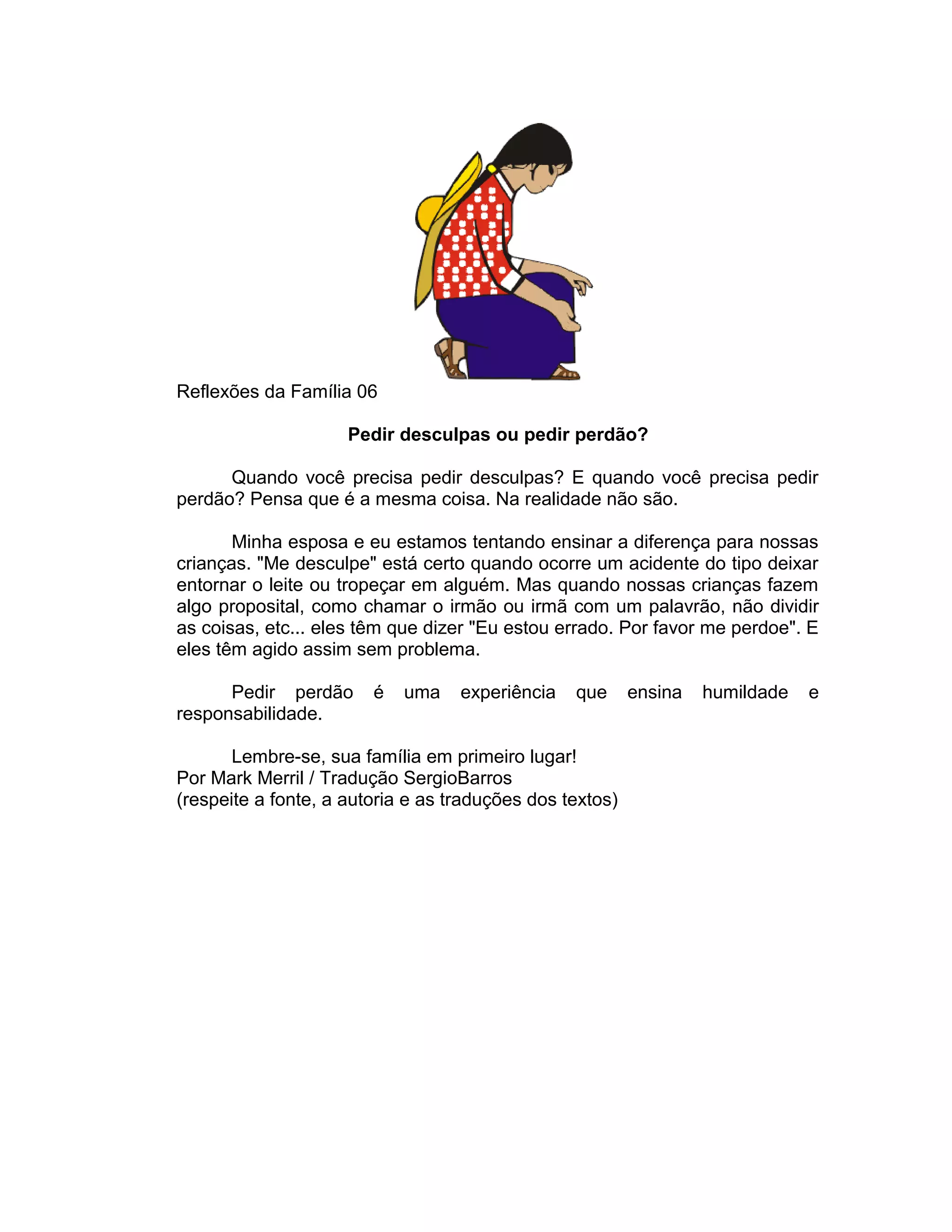 A diferença entre pedir desculpas e pedir perdão. Pedir desculpas é apropriado para acidentes, enquanto pedir perdão deve ser usado quando alguém faz algo intencionalmente errado, como insultar outro membro da família, para ensinar humildade e responsabilidade.
