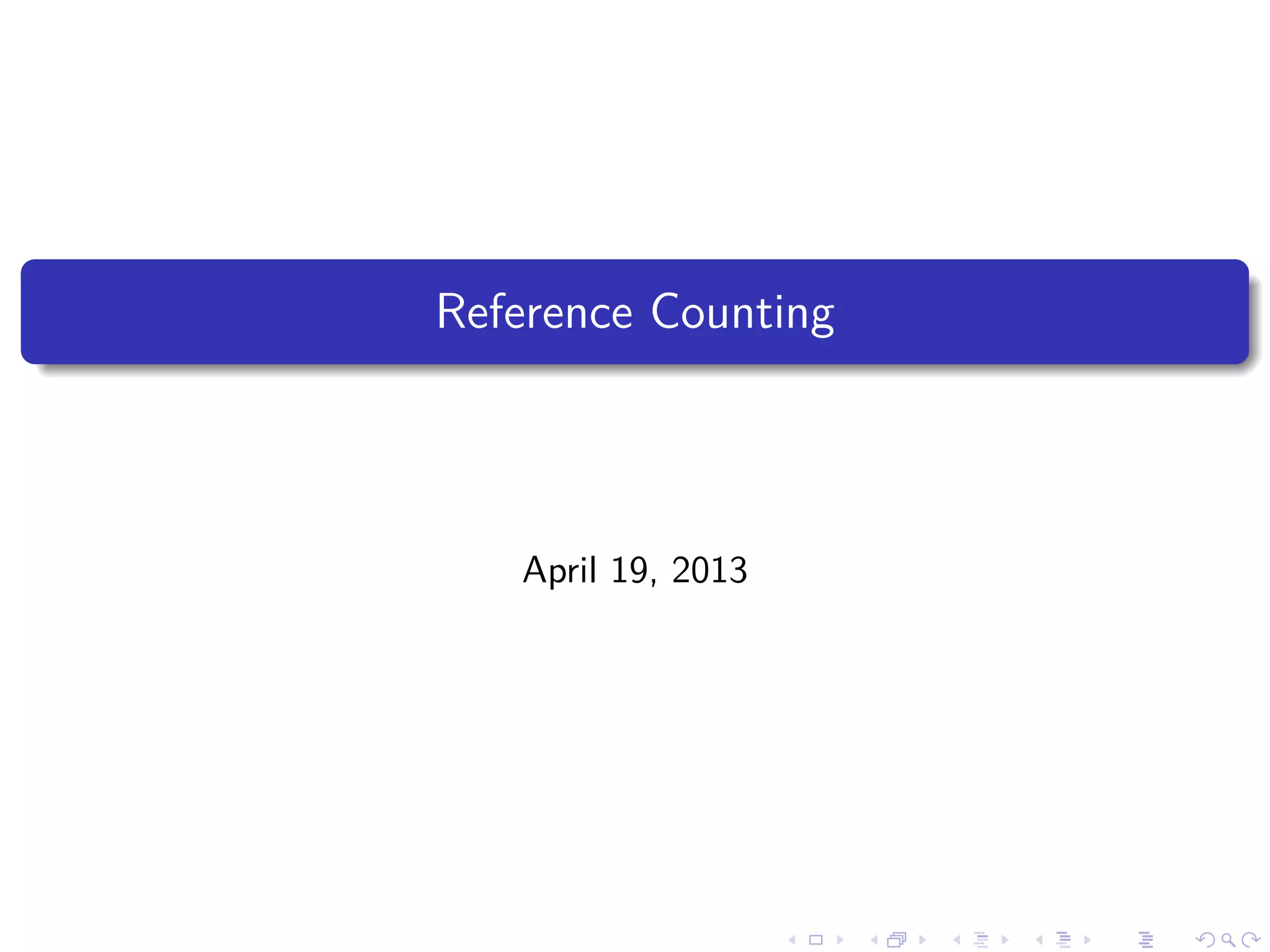 O documento discute a técnica de contagem de referências para gerenciamento de recursos em ambientes concorrentes. A contagem de referências mantém um contador do número de referências para cada objeto e libera o objeto quando o contador chega a zero. O documento descreve como implementar a contagem de referências e regras para seu uso correto, como lidar com ciclos de referência e garantir a ordem correta de operações.