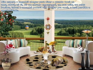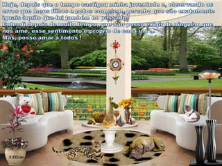 O documento reflete sobre como, ao envelhecer, as pessoas gostariam de consertar o passado e relembram com carinho momentos da infância com a família, como brincadeiras, comidas caseiras e afeto. Também discute como a sabedoria de Deus nos faz valorizar a família e o amor, especialmente quando a juventude se foi ou quando perdemos entes queridos. A pessoa quer expressar seu amor eterno à família.