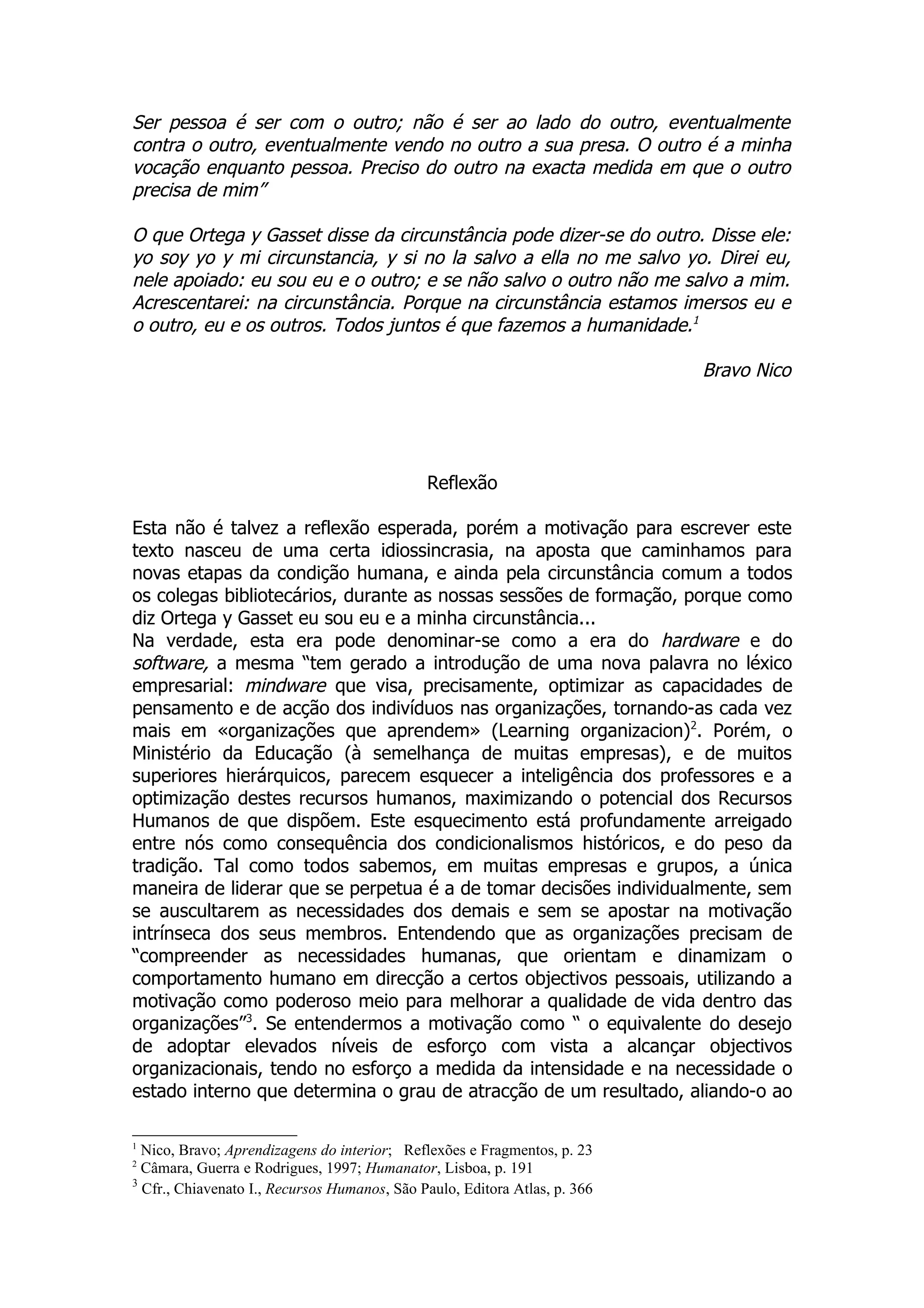 O documento discute a importância de ver o outro como uma vocação e não como um adversário. Propõe sessões de formação onde professores bibliotecários possam partilhar as suas experiências e áreas de especialização para melhorar as competências dos colegas. A liderança deve apostar na motivação intrínseca e na liberdade dos membros para escolher como desenvolver a sua profissão.