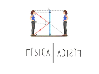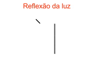 O documento discute os tipos e leis da reflexão da luz, incluindo que os raios incidentes, refletidos e a normal são coplanares de acordo com a primeira lei da reflexão. Também explica como imagens são formadas por reflexão em espelhos planos, com características como imagens virtuais, direitas e reversas.