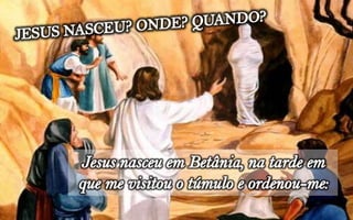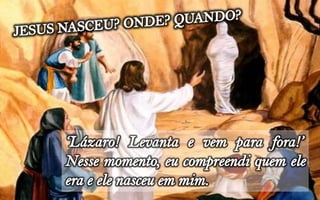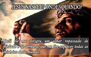 O texto discute quando e como Jesus realmente nasceu, não apenas no dia de Natal. Vários seguidores de Cristo descrevem quando sentiram que Jesus nasceu em seus corações através de experiências transformadoras. O verdadeiro nascimento de Jesus ocorre quando compartilhamos seu amor.
