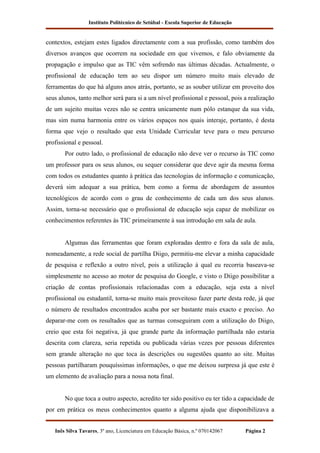 2) Ela acredita que as TIC podem ser úteis na sala de aula se usadas corretamente e contextualizadas.