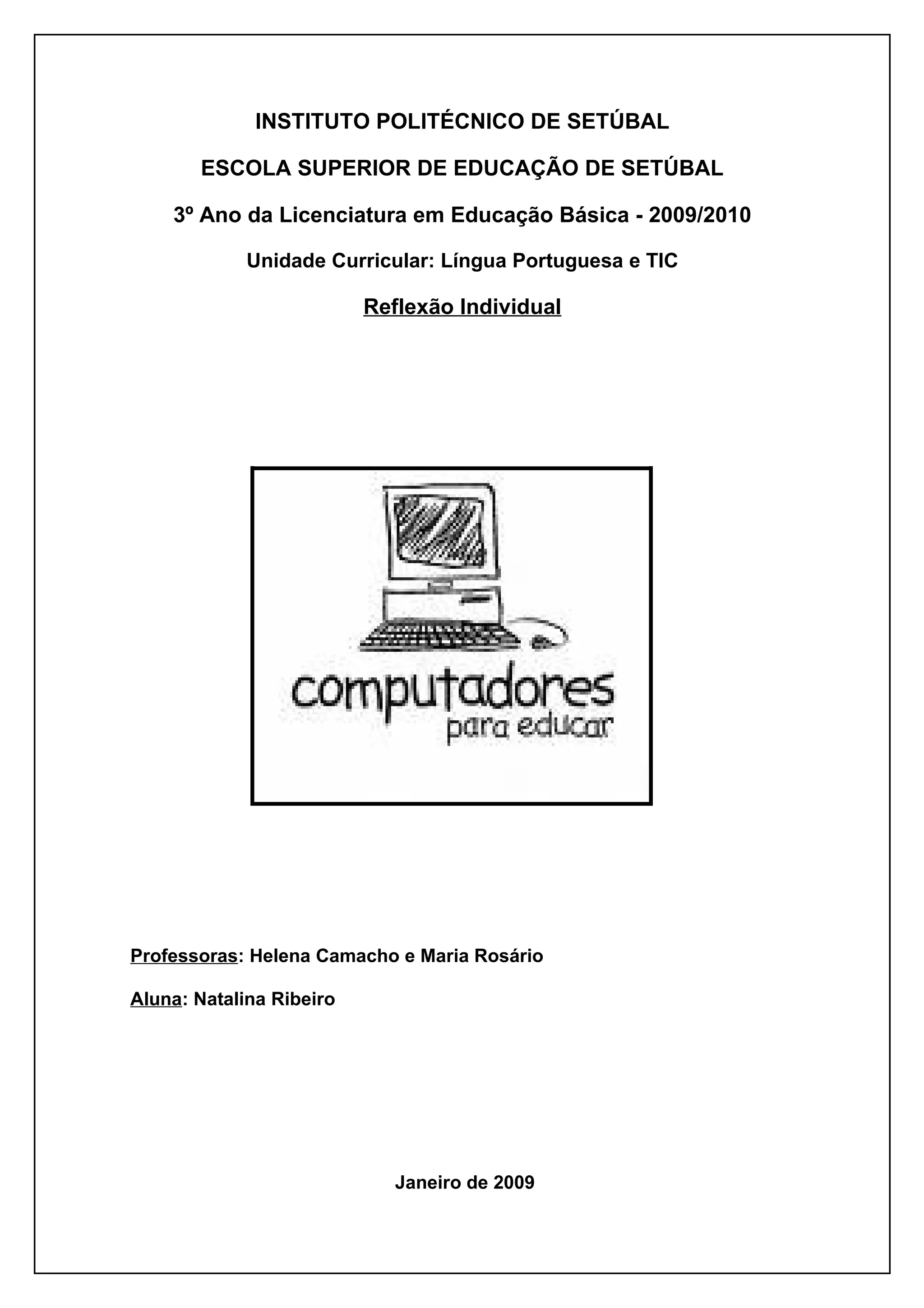1) O documento descreve a reflexão de uma aluna sobre a unidade curricular de Língua Portuguesa e TIC.