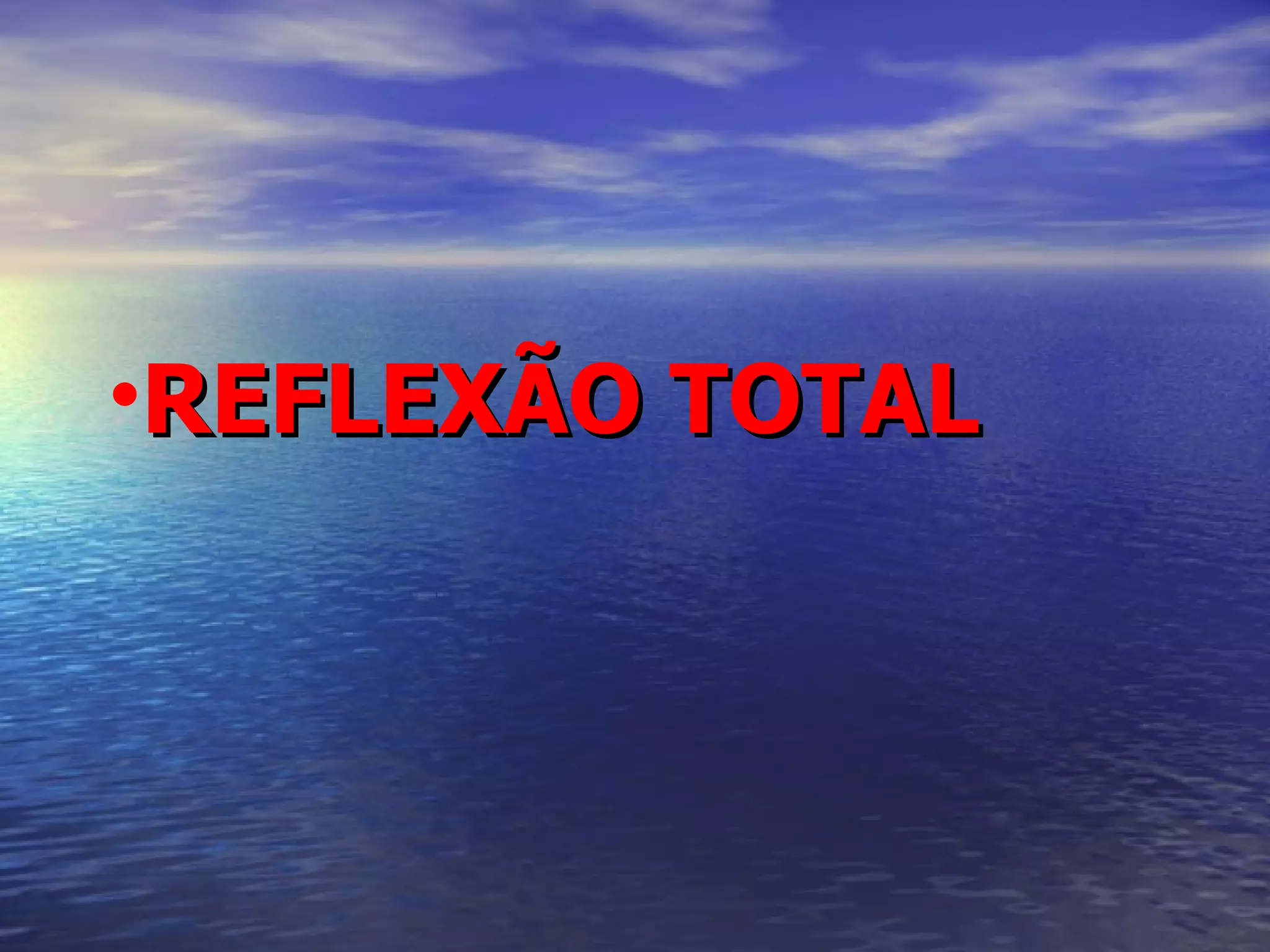 O documento discute o fenômeno da reflexão total, onde a luz incidindo de um meio mais denso para um menos denso em um ângulo maior que o ângulo limite é totalmente refletida na interface, e calcula esse ângulo limite usando a lei de Snell. Ele também lista exemplos como a miragem onde a reflexão total ocorre devido a variações de temperatura no ar próximo ao solo.