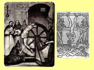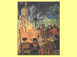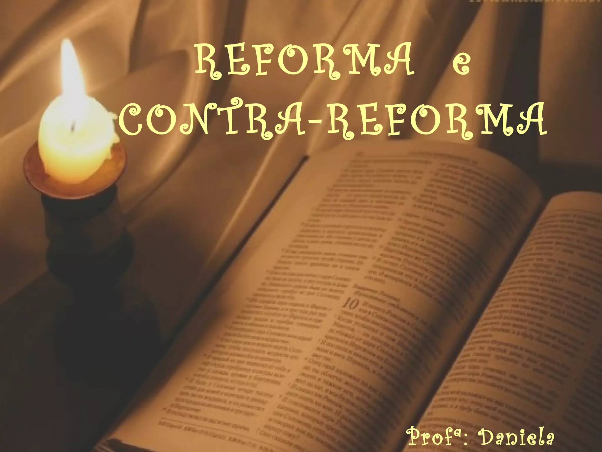 O documento descreve as principais causas e líderes da Reforma Protestante e da Contra-Reforma Católica. A Reforma foi liderada por Lutero e Calvino e questionou práticas católicas como indulgências. Isso levou à divisão do cristianismo entre católicos e novos grupos protestantes. A Contra-Reforma católica incluiu a criação dos Jesuítas, o Concílio de Trento e a reativação da Inquisição.