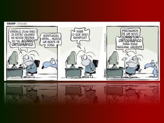 O documento descreve as principais mudanças nas regras ortográficas brasileiras introduzidas pelo novo acordo ortográfico, incluindo a adição de letras ao alfabeto, a remoção do trema em certas palavras e mudanças nas regras de acentuação e uso do hífen.