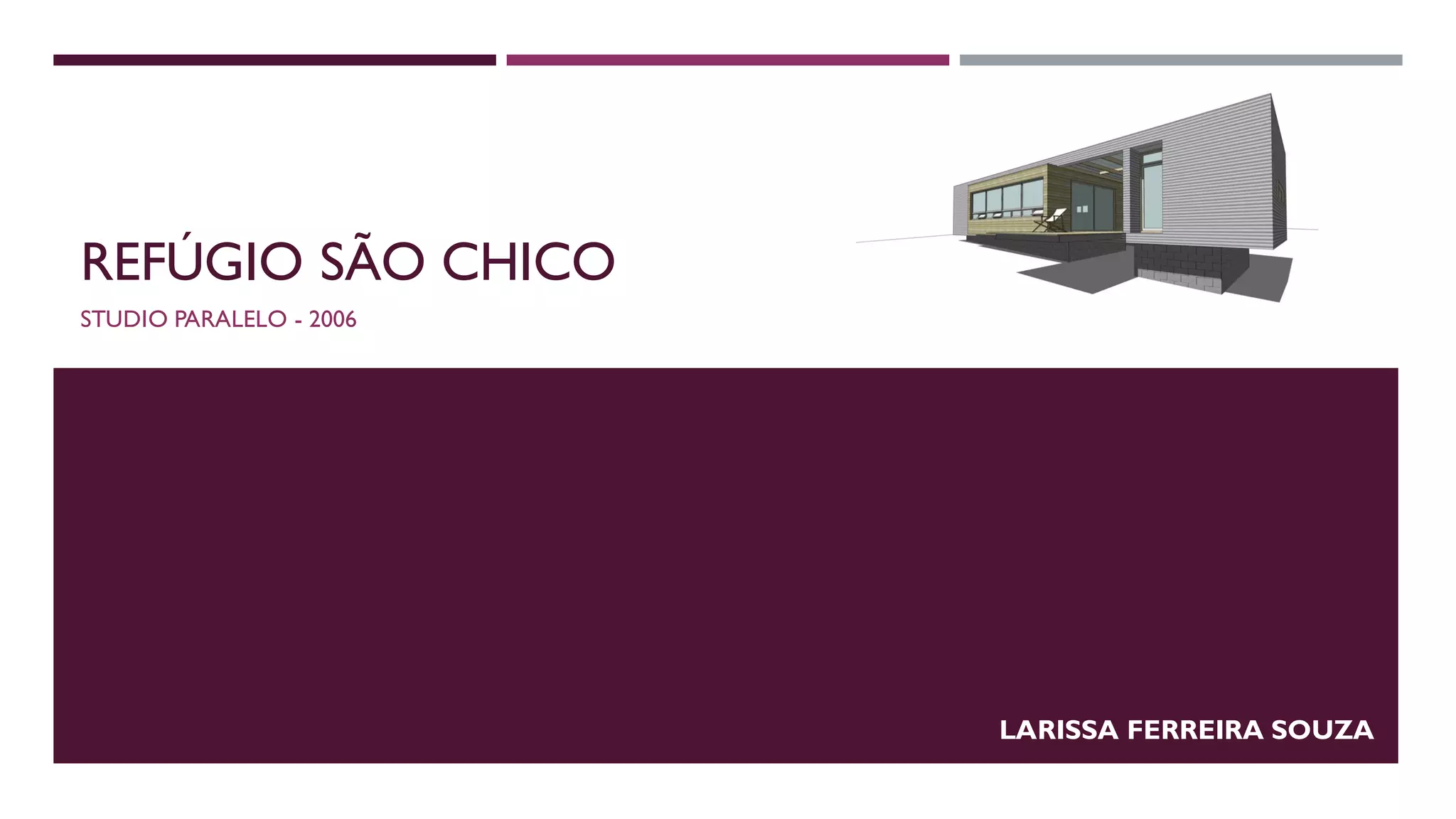 O documento descreve um refúgio localizado em São Francisco de Paula no Rio Grande do Sul. O proprietário queria criar um espaço integrado com o meio externo com conforto e design contemporâneo. O refúgio possui 82m2 construídos em um terreno de 1.610m2, com duas caixas retangulares de madeira e telha se interceptando.