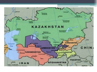 3) As repúblicas da Ásia Central como Usbequistão e Casaquistão, ricos em petróleo e gás e historicamente na Rota da Seda.