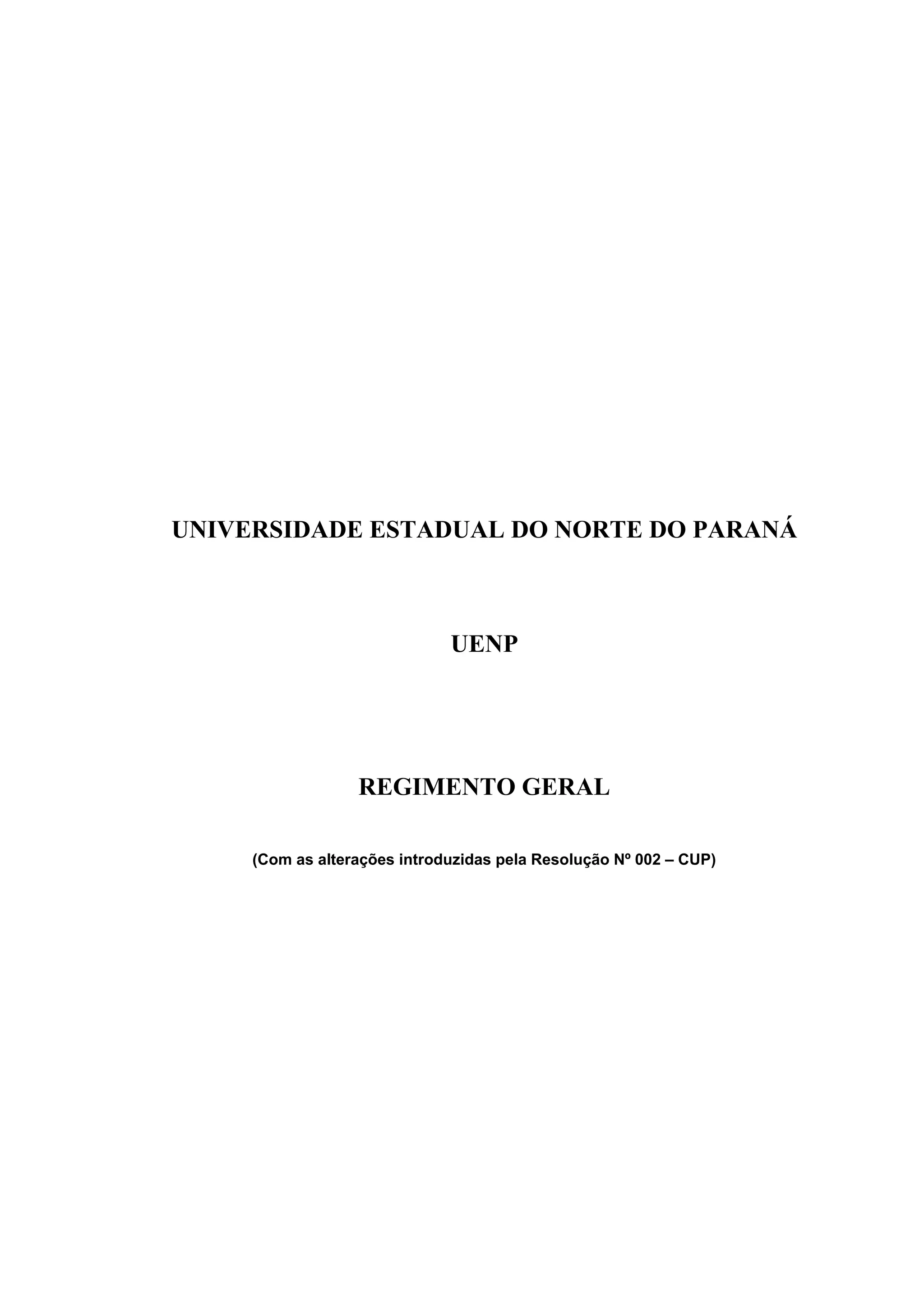 1) O documento descreve a organização administrativa e os órgãos de governo da Universidade Estadual do Norte do Paraná (UENP), incluindo o Conselho Universitário (CONSUNI), o Conselho de Ensino Pesquisa e Extensão (CEPE) e o Conselho de Administração (CAD).