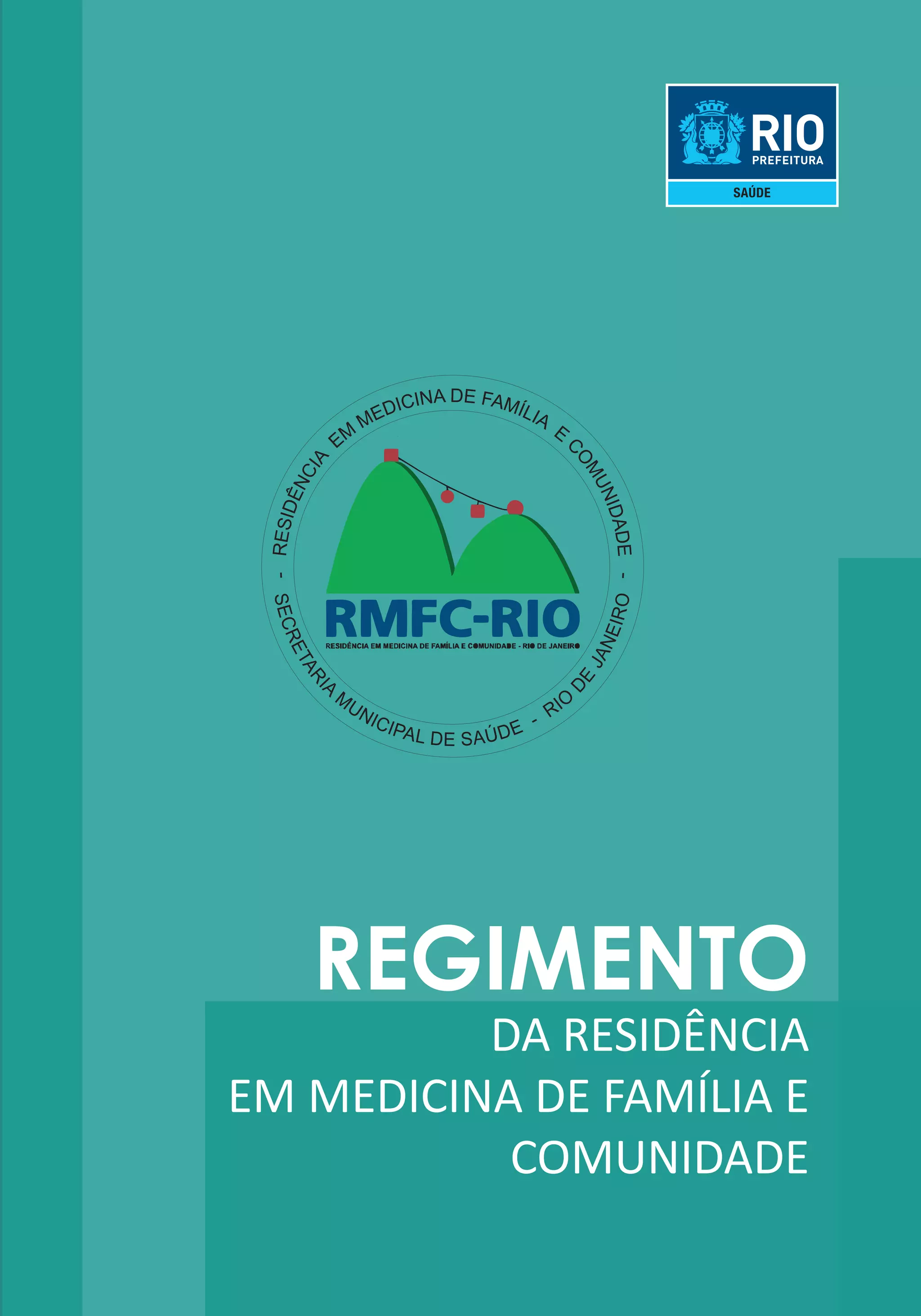 Este documento estabelece o Regimento Interno da Residência em Medicina de Família e Comunidade da Secretaria Municipal de Saúde do Rio de Janeiro. Ele define a organização do programa de residência, incluindo a Comissão de Residência Médica, os objetivos do programa, as atribuições dos residentes, preceptores e coordenadores, e os requisitos mínimos exigidos pela Comissão Nacional de Residência Médica.