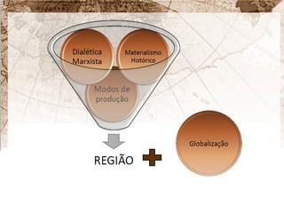 Este documento discute o conceito de região natural e como ele evoluiu ao longo do tempo. Apresenta diferentes abordagens como possibilismo, que enfatiza o papel do homem, e método regional, que se concentra nas diferenciações entre áreas. Também explica os diversos tipos de regiões, incluindo homogêneas, funcionais e polarizadas.