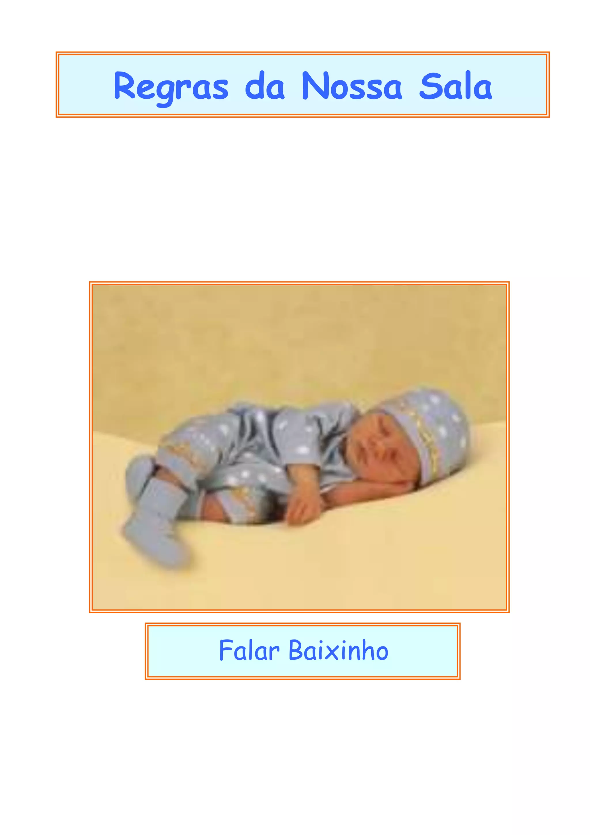 As regras da sala são falar baixinho, partilhar brinquedos e respeitar uns aos outros.