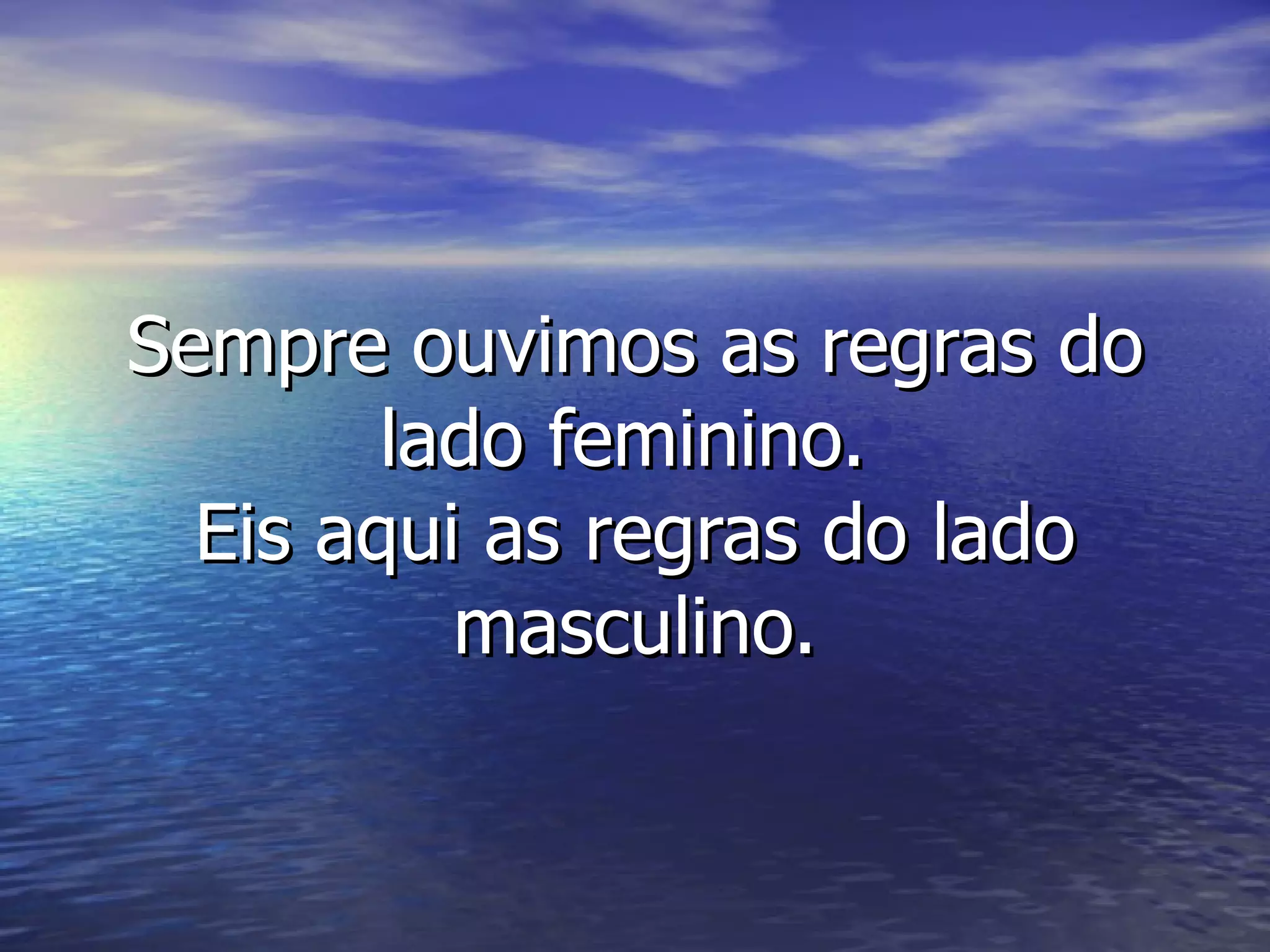 O documento lista "regras" estereotipadas do ponto de vista masculino, como olhar para mulheres, não discutir futebol ou sexo, e não questionar a aparência física dos homens. A intenção é provocar as mulheres e promover uma visão preconceituada dos papéis de gênero.