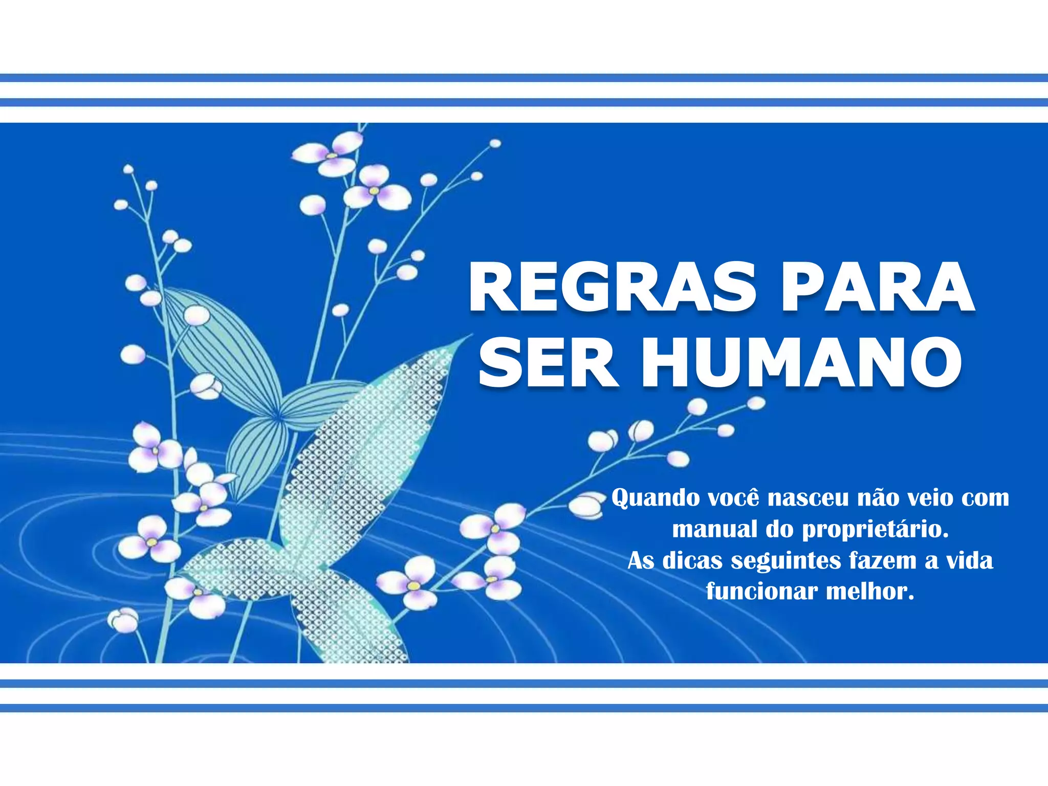 O documento fornece dicas sobre como viver melhor, explicando que cada pessoa recebe um corpo e aprende lições ao longo da vida. Essas lições se repetem até serem aprendidas, e problemas externos refletem o estado interior da pessoa. No final, o texto diz que as respostas estão dentro de cada um.