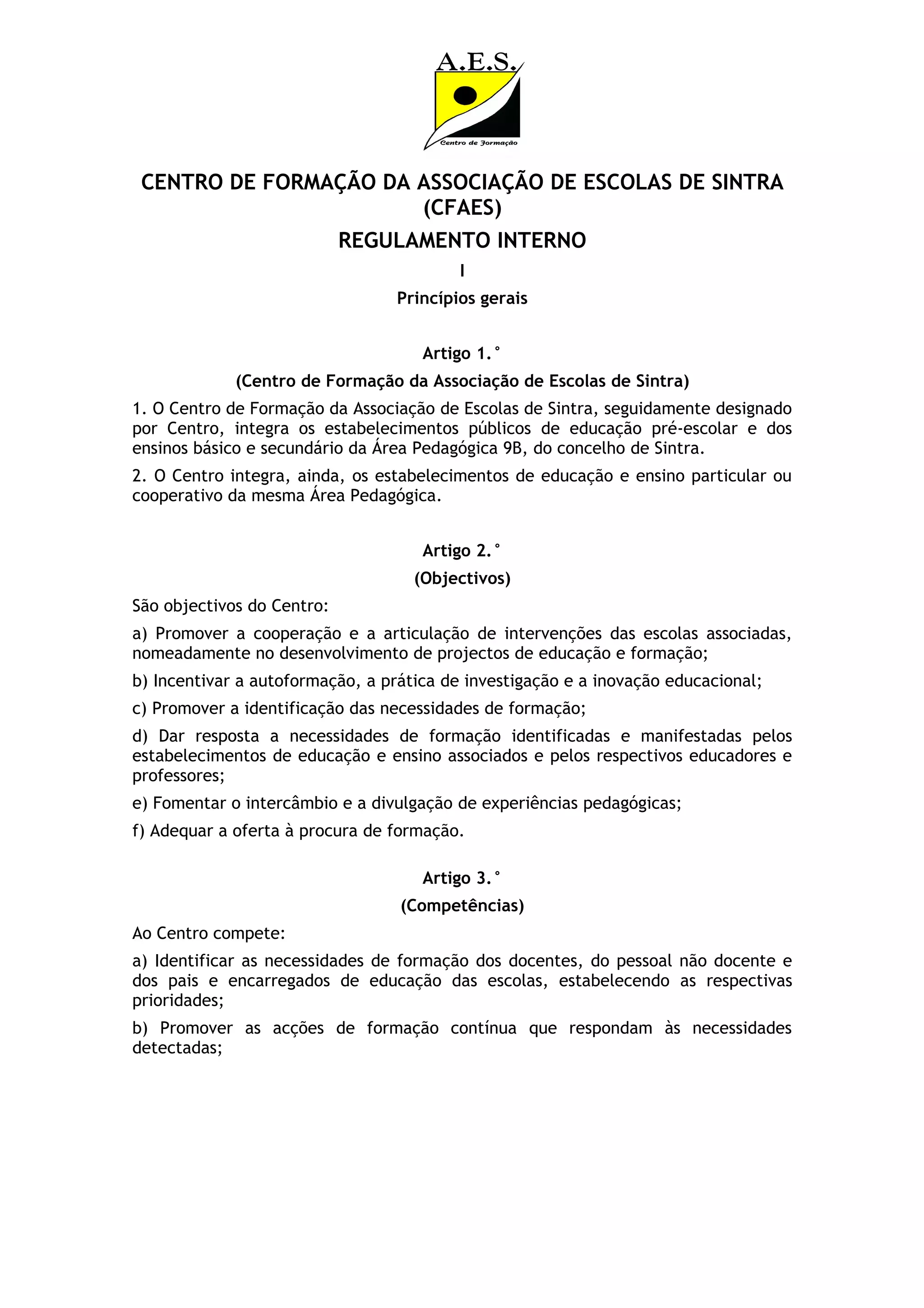 1. O Centro de Formação da Associação de Escolas de Sintra, seguidamente designado