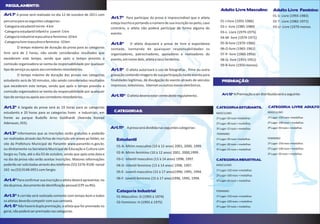 Este regulamento descreve as regras e categorias para uma corrida de rua a ser realizada em 12 de outubro de 2011. As categorias incluem estudantes, industriais e adultos livres. Os estudantes competirão em percursos de 4-5 km e os demais em 10 km. Haverá premiação monetária para os três primeiros colocados de cada categoria, bem como para os campeões gerais masculino e feminino.