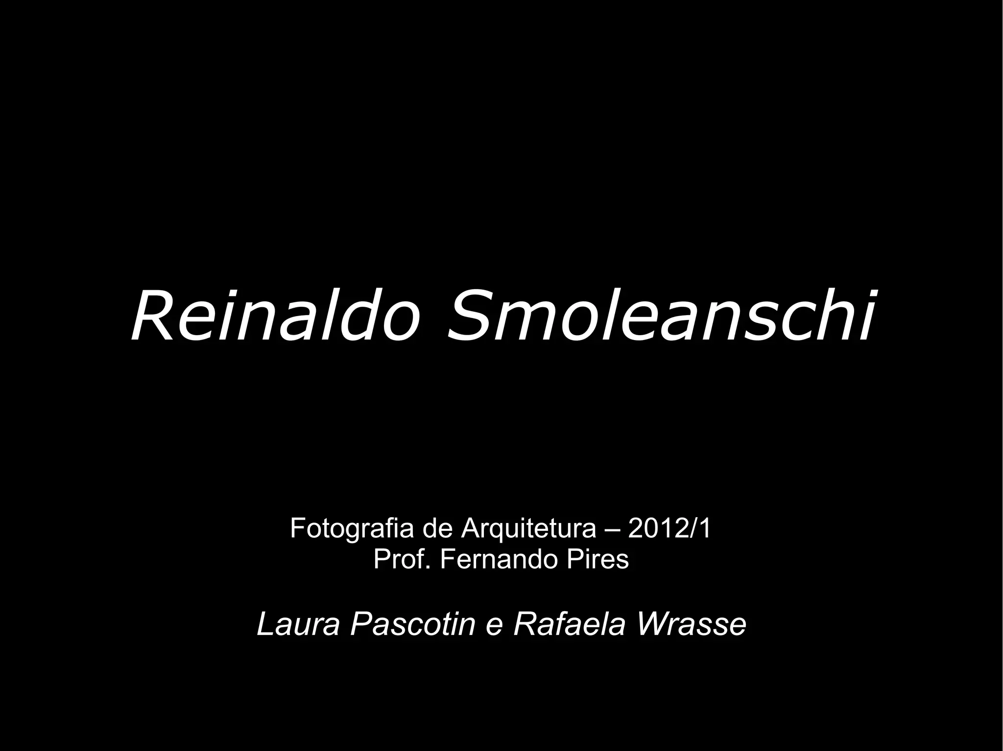 O documento descreve o fotógrafo Reinaldo Smoleanschi, que há mais de 20 anos fotografa arquitetura no Brasil e no exterior para vários clientes. Quando fotografa arquitetura, Smoleanschi busca captar a visão do arquiteto através da correta luz, textura e posicionamento do sol. Atualmente, ele divide seu trabalho entre o Rio de Janeiro e Nova York, além de ministrar cursos de fotografia.