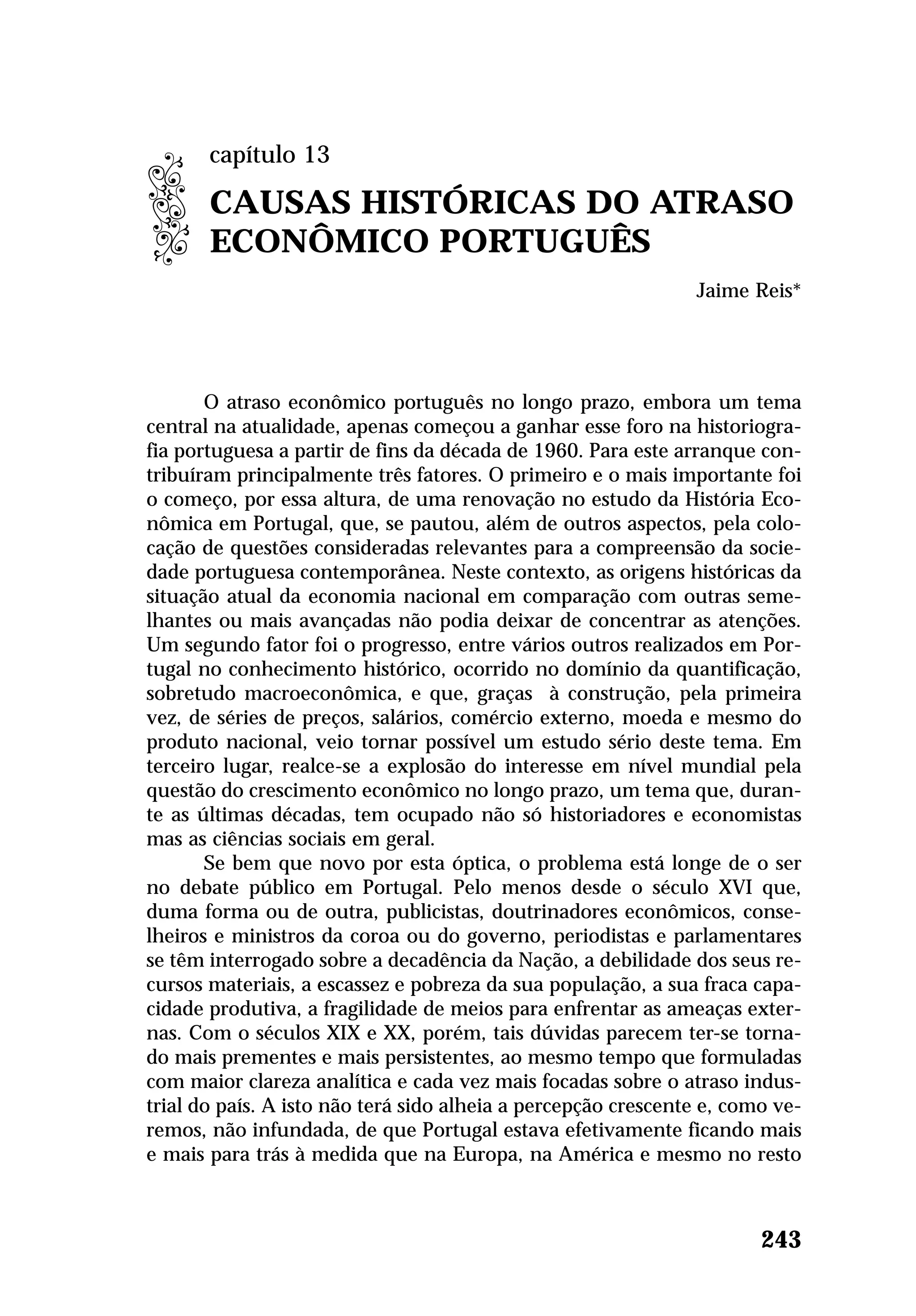 1) O documento discute as causas históricas do atraso econômico de Portugal, um tema que ganhou importância na historiografia portuguesa a partir da década de 1960.