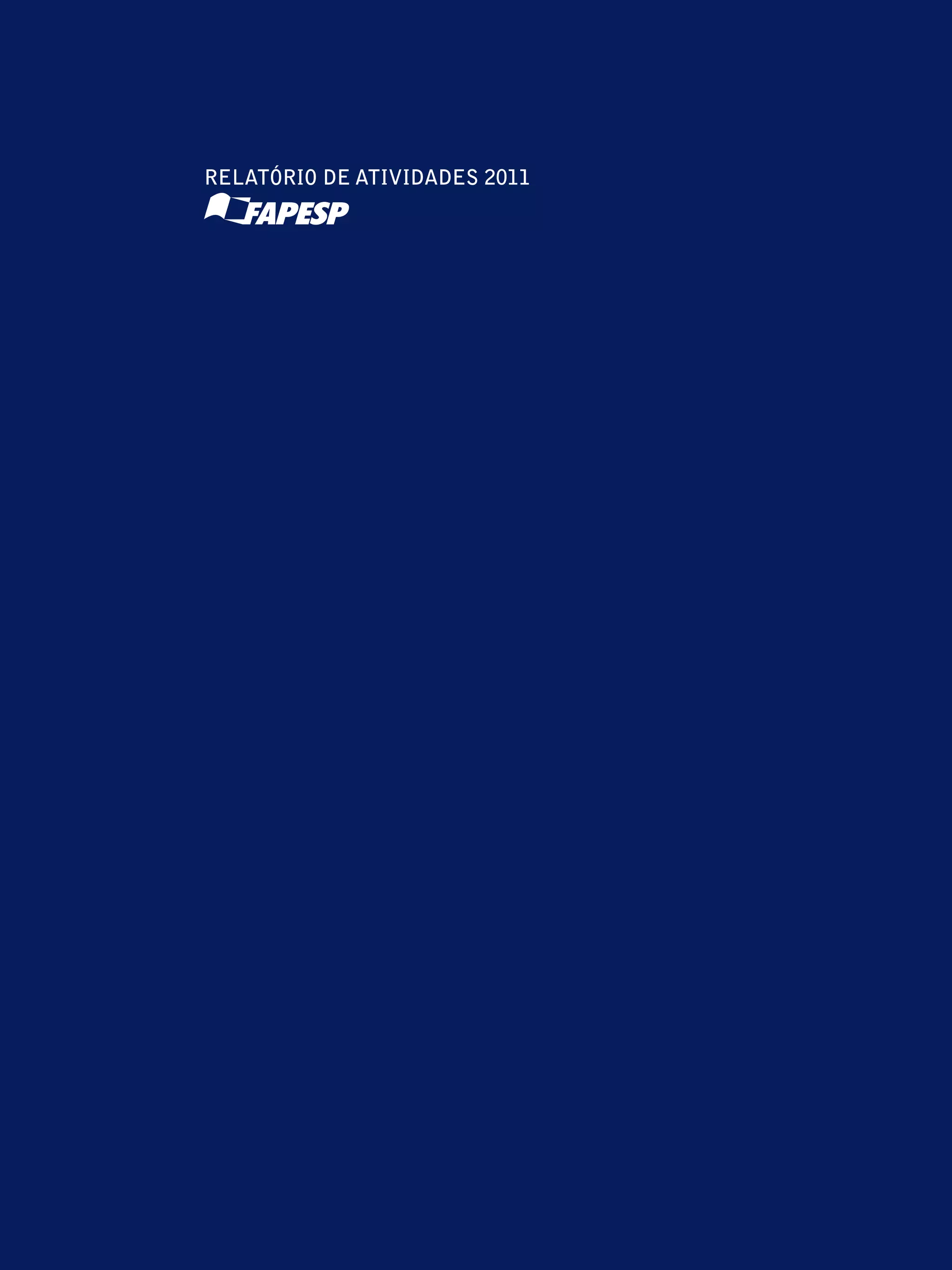 O relatório descreve as atividades e realizações da Fundação de Amparo à Pesquisa do Estado de São Paulo (FAPESP) em 2011. A FAPESP contratou mais de 12 mil novos projetos de pesquisa e desembolsou quase R$ 938 milhões, superando o ano anterior. Destaca-se a aquisição do navio Alpha Crucis para pesquisas oceânicas. A FAPESP também expandiu sua cooperação internacional com novos convênios e eventos no exterior.
