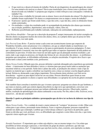 O documento discute a importância de relatar experiências da sala de classe e fornece recomendações de especialistas. Deve-se descrever o processo completo, incluindo desafios e soluções, para que outros professores possam aprender. Um relato é subjetivo ao contrário de um relatório e deve mostrar a jornada emocional do professor.