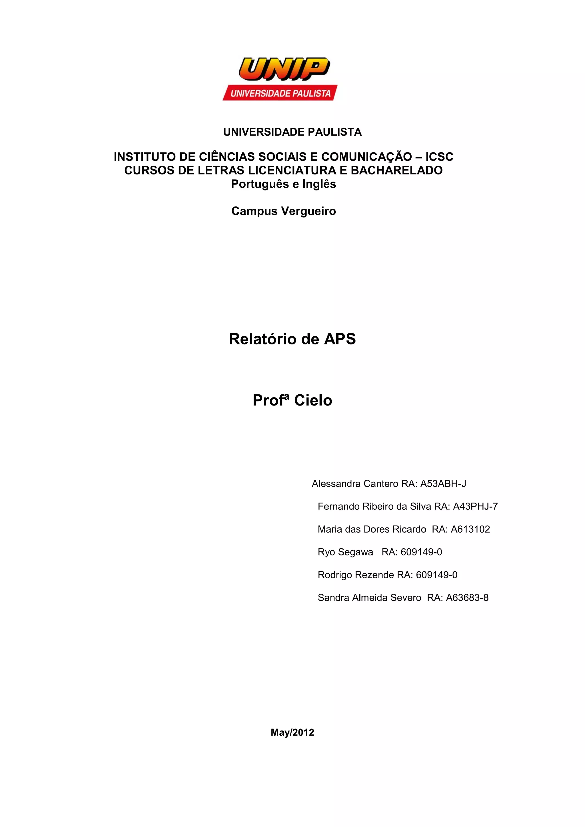 1) O documento relata uma atividade de APS realizada sob orientação da Profa Cielo Festino, adotando o modelo PROLIT e focando no poeta E.E. Cummings.