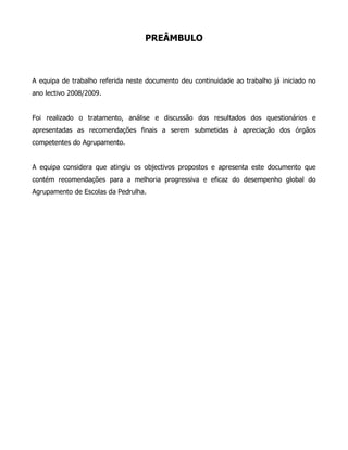 Os alunos do 1o ciclo sentem-se bem integrados na escola e existe um ambiente propício para o sucesso escolar. A maioria dos alunos sente que a escola se preocupa para que realizem as suas aprendizagens com sucesso. Contudo, as atividades em horário não lectivo ainda podem ser melhoradas.