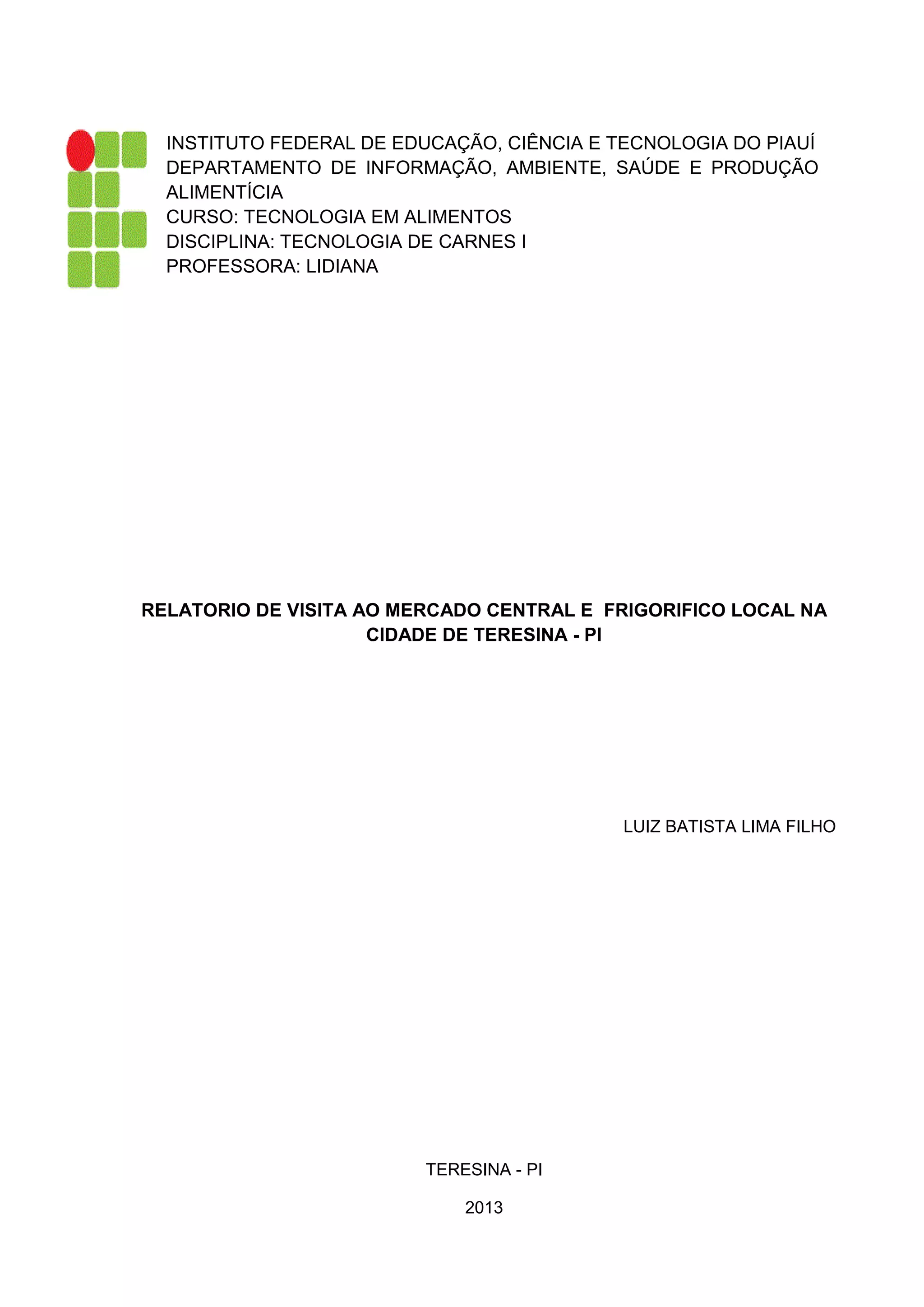 1. O relatório descreve as condições sanitárias no Mercado Central e um frigorífico local em Teresina-PI.