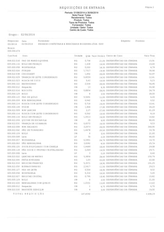 O documento lista requisições de entrada de produtos e serviços feitas pela Câmara Municipal de Turística Ibitinga no período de 01/06/2014 a 30/06/2014. As requisições incluem itens como baterias, combustíveis, alimentos, equipamentos de escritório e manutenção de veículos. No total foram feitas requisições para 11 fornecedores diferentes nesse período.