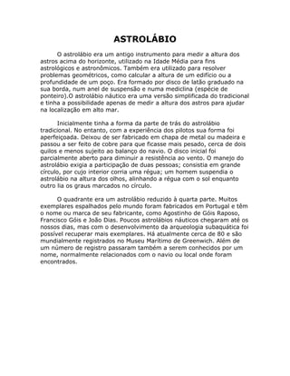 2) O astrolábio náutico era uma versão simplificada usada para navegação.