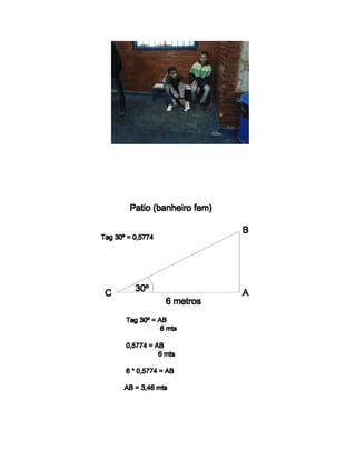3) O documento descreve como um grupo de estudantes construiu um astrolábio de papelão e realizou medições em triângulos na escola.