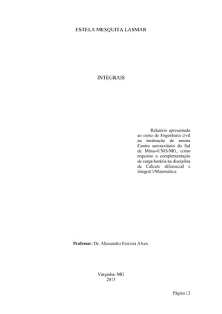 1. O documento apresenta um relatório sobre cálculo de integrais.