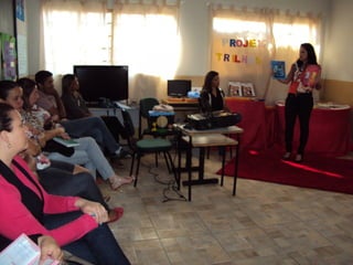 No terceiro encontro, os professores receberam mais detalhes e orientações sobre como aplicar as atividades do projeto Trilhas em sala de aula com foco na leitura, es