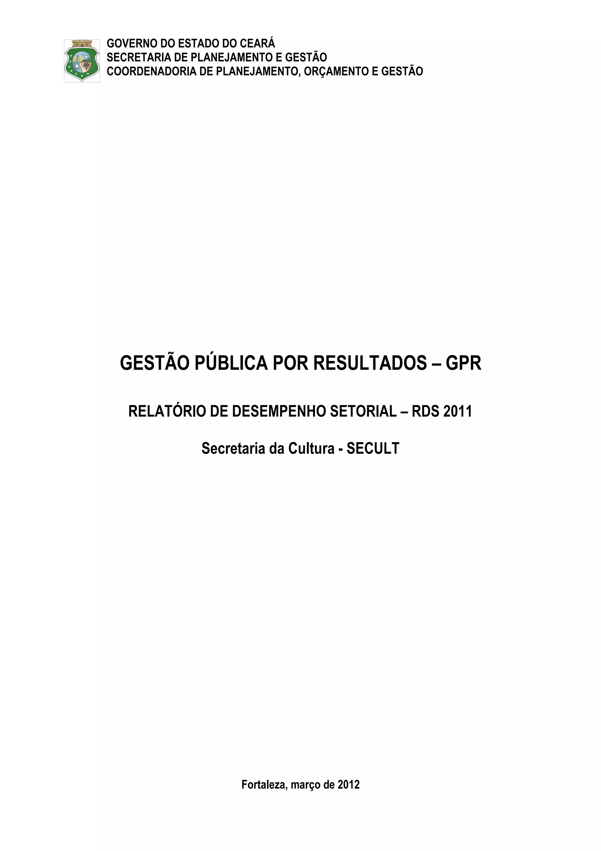 1. O relatório analisa os resultados setoriais da Secretaria da Cultura do Ceará (SECULT) em 2011.