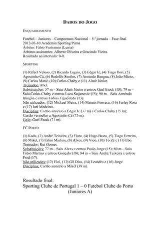 1) O Sporting utilizou um esquema ofensivo de 4-3-3 com ênfase na posse de bola. O Porto pressionou bem a saída de bola do Sporting.