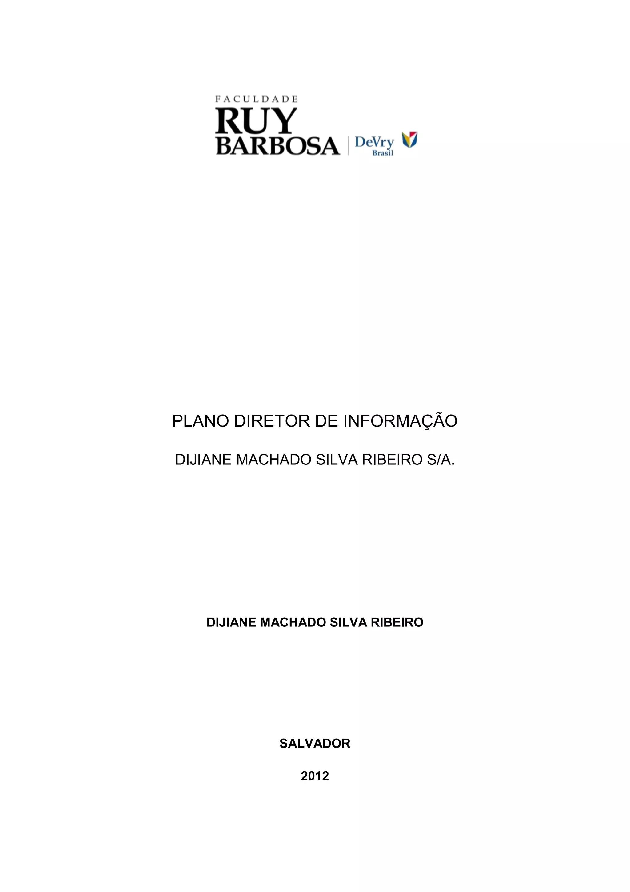 PLANO DIRETOR DEINFORMAÇÃO DIJIANE MACHADO SILVA RIBEIRO S/A. DIJIANE MACHADO SILVA RIBEIRO SALVADOR 2012