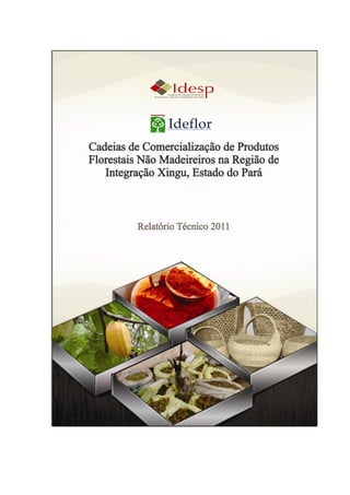 O relatório técnico apresenta os resultados de um estudo sobre as cadeias de comercialização de produtos florestais não madeireiros na Região de Integração Xingu, no Pará. Foram identificados 46 produtos comercializados na região e analisados os fluxos de produção, beneficiamento, transformação, comércio e destino final. Constatou-se que esses produtos, especialmente cacau, castanha-do-brasil, urucum, açaí, palmito e taperebá, têm significativa importância econômica na região