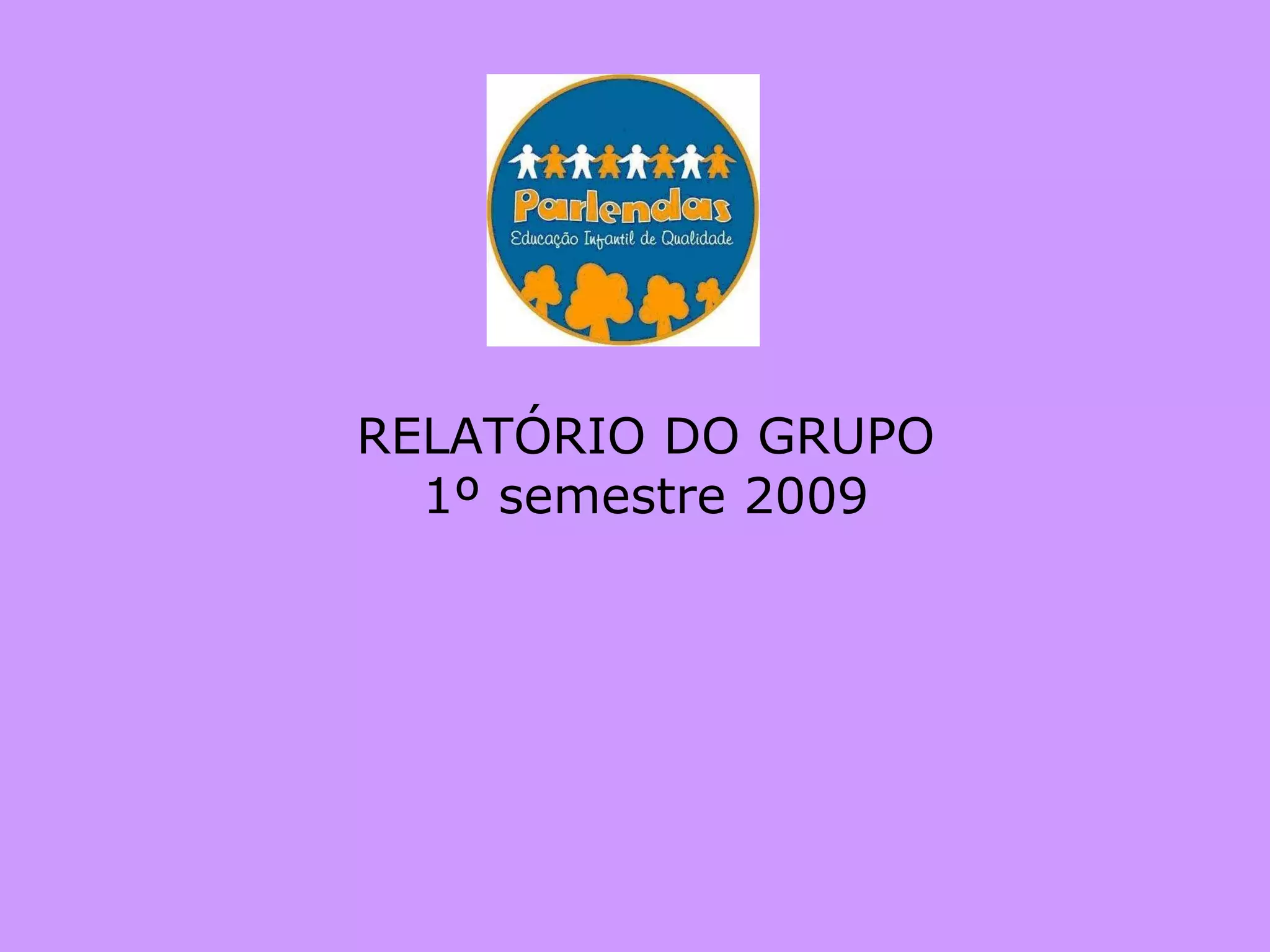 O relatório descreve o primeiro semestre de 2009 de um grupo de crianças, destacando suas conquistas e desafios, como o desenvolvimento de respeito, união e habilidades de resolução de conflitos. Projetos como brincadeiras e a arte de Gustavo Rosa estimularam a criatividade, enquanto atividades como rodas de conversa e lanches promoveram a socialização.